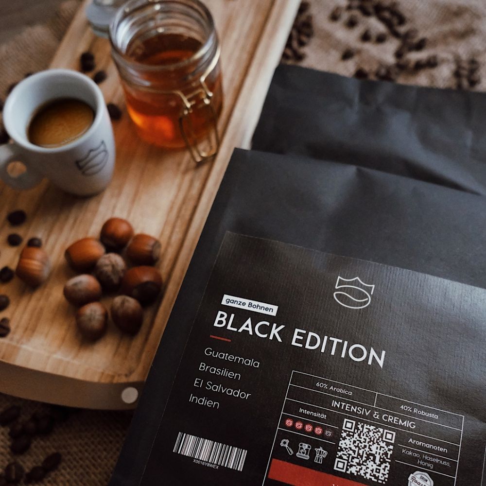 Kräftig & vollmundig – mit intensiven Noten von Kakao und Haselnuss, abgerundet durch milde Säure, vollen Körper und eine samtige Crema. Ein echter Muntermacher!