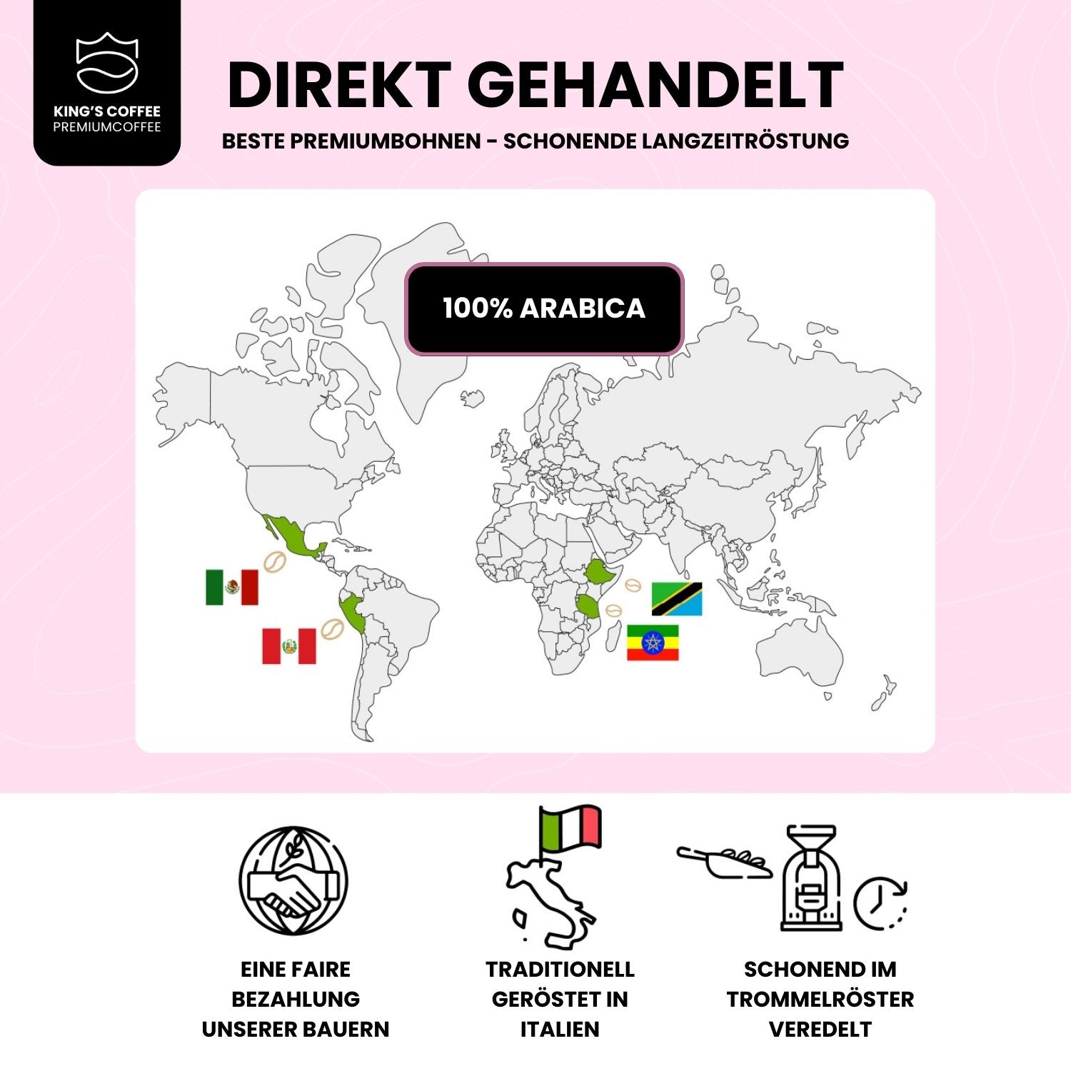 Beste Bohnen aus Äthiopien, Mexiko, Peru & Tansania – fair bezahlt und nachhaltig angebaut.